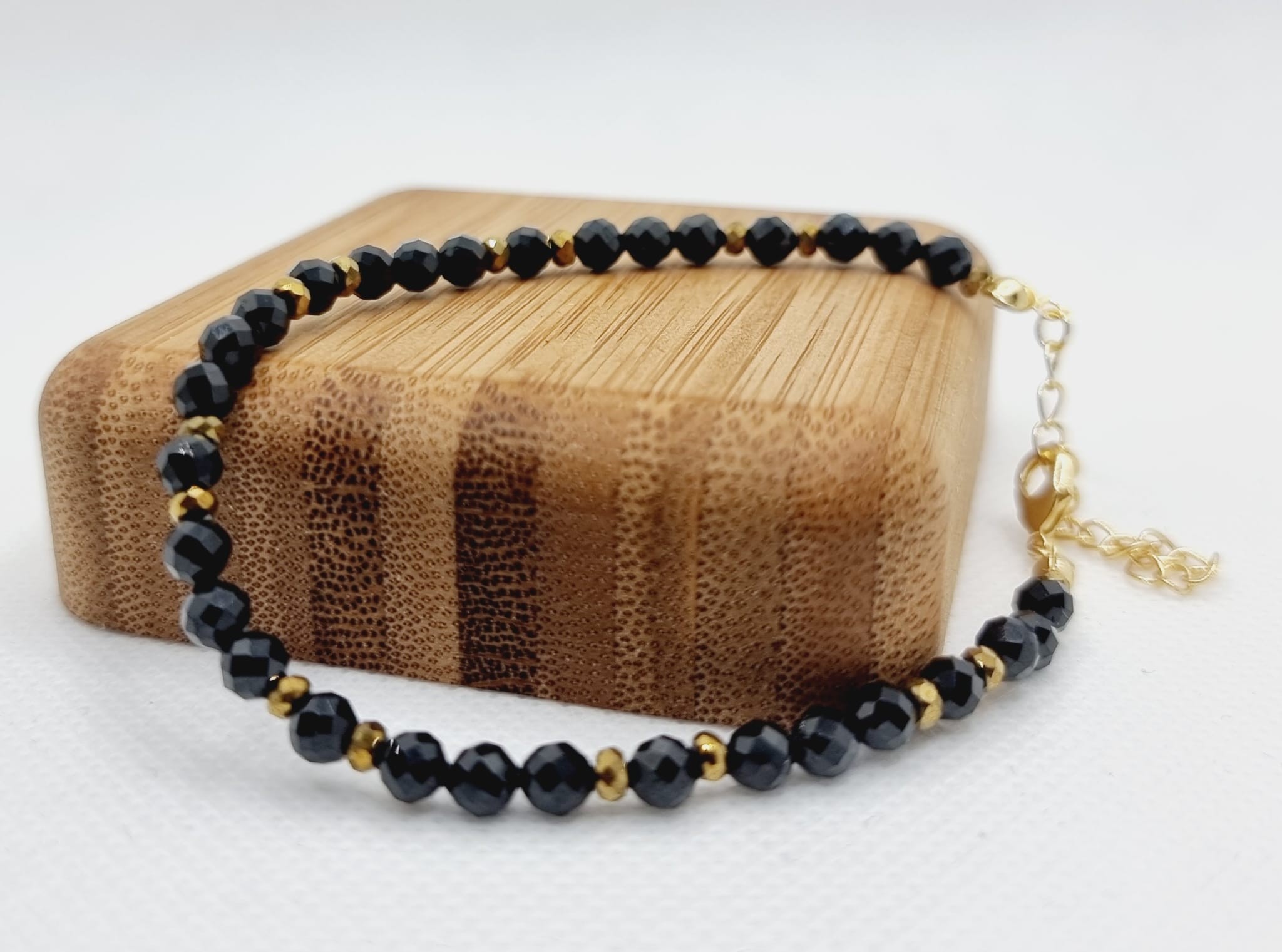 Delikatna bransoletka z turmalinu w połączeniu z hematytem.